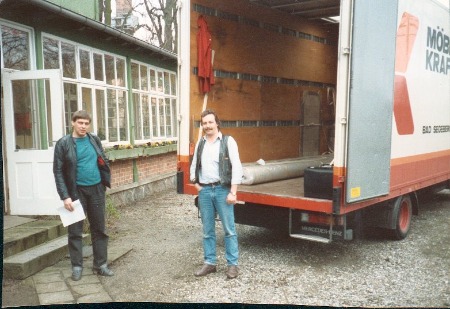 Aus dieser Zeit sind einige Bilder entstanden über die Auslieferung in die damalige DDR . Es gab keine Straßenkarten oder Generalstabskarten.Alle ersten Kunden mußten beim Kauf eine Wegezkizze anfertigen,wonach Wir uns richten mußten.Dieses war teilweise sehr Abenteuerlich